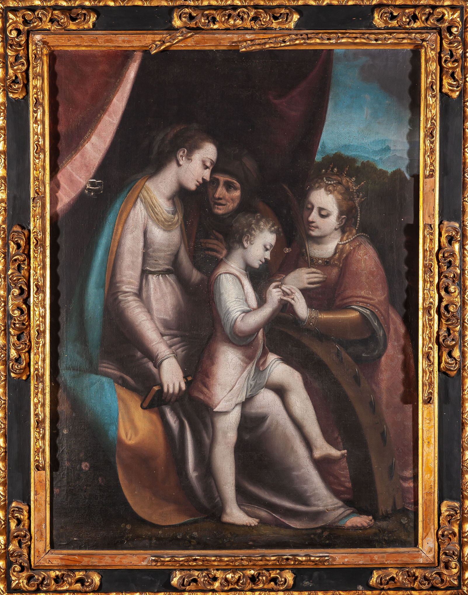 - ESCUELA ESPAÑOLA DEL SIGLO XVII. Desposorios de Santa Catalina. Óleo sobre lienzo. 94 x 70 cm. Precio de remate: 23.000€ (Goya)