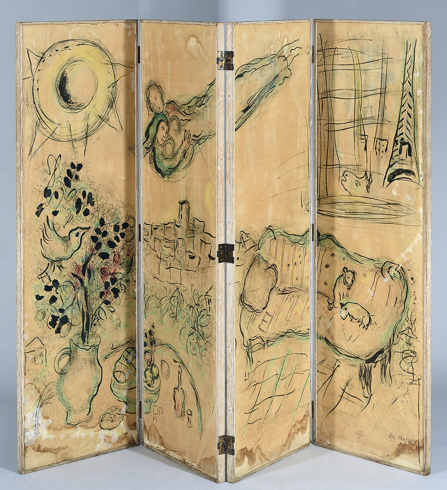 - CHAGALL, MARC. Paravent. Biombo de cuatro hojas de litografías a color. 147 x 191 cm. Precio de remate: 12.000€ (Retiro)