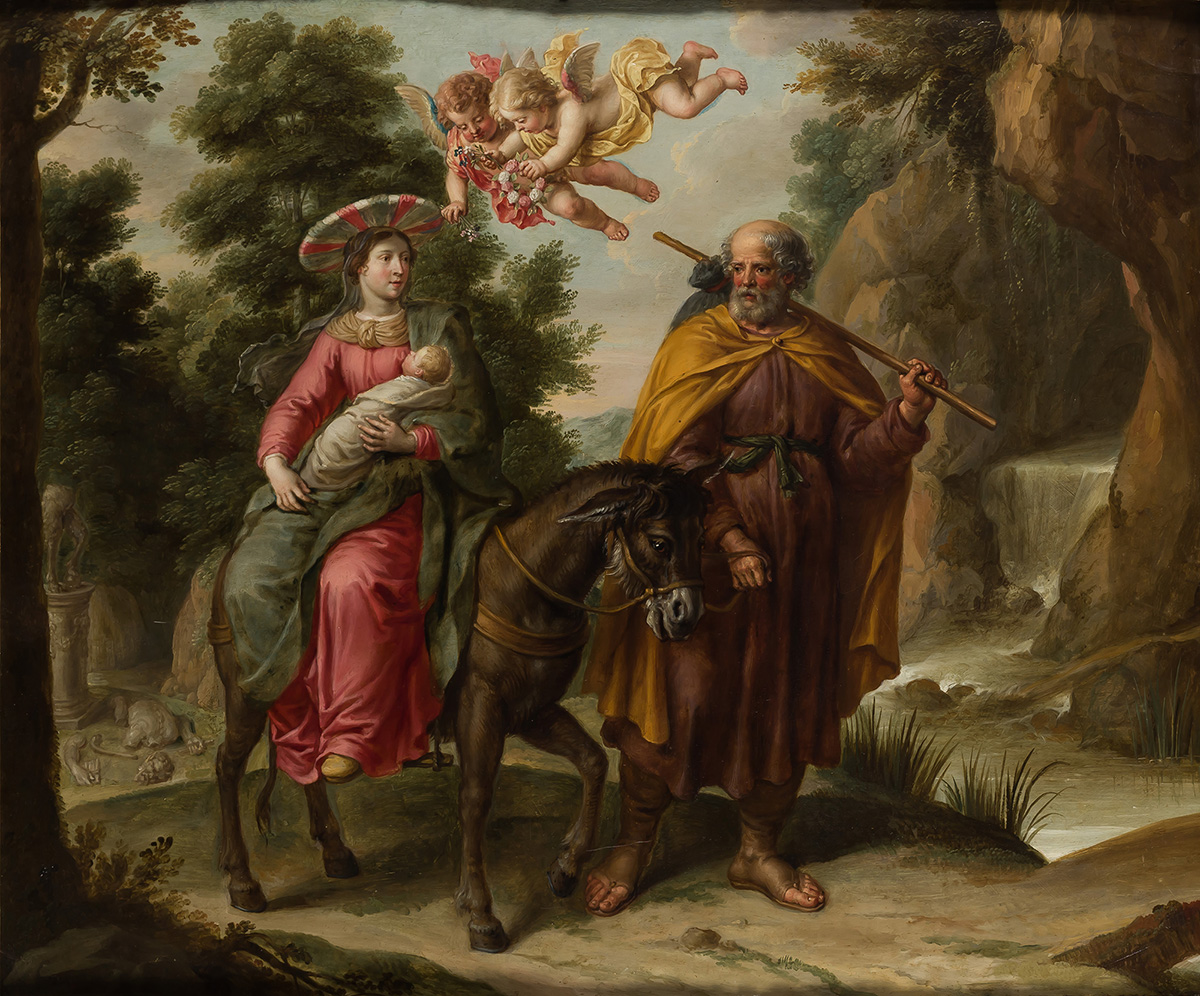 - VAN LINT, PETER. Huida a Egipto. Óleo sobre cobre. 72 x 89 cm. Precio de remate: 14.000€ (Ansorena)