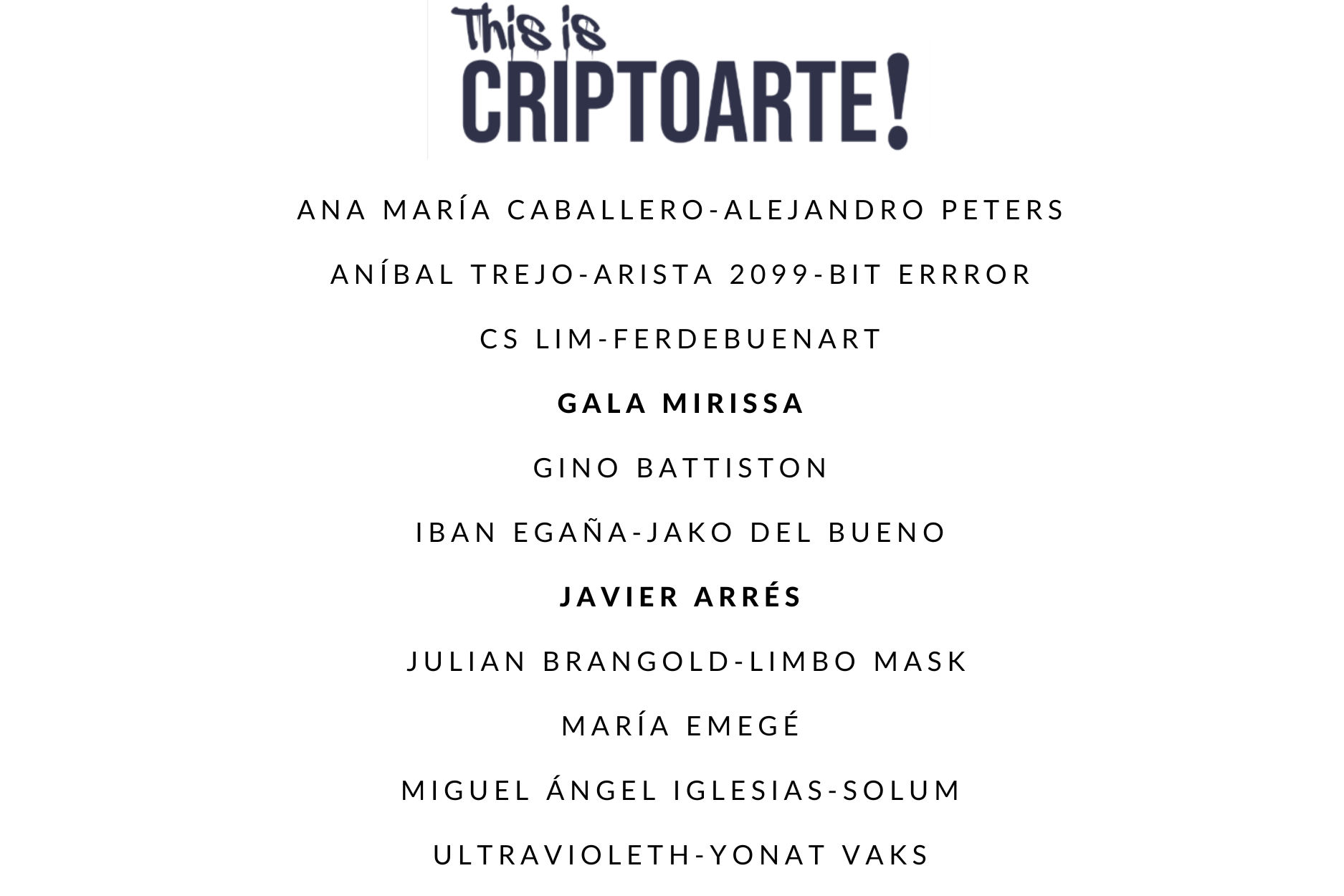 Line up de artistas ¨This is criptoarte!¨