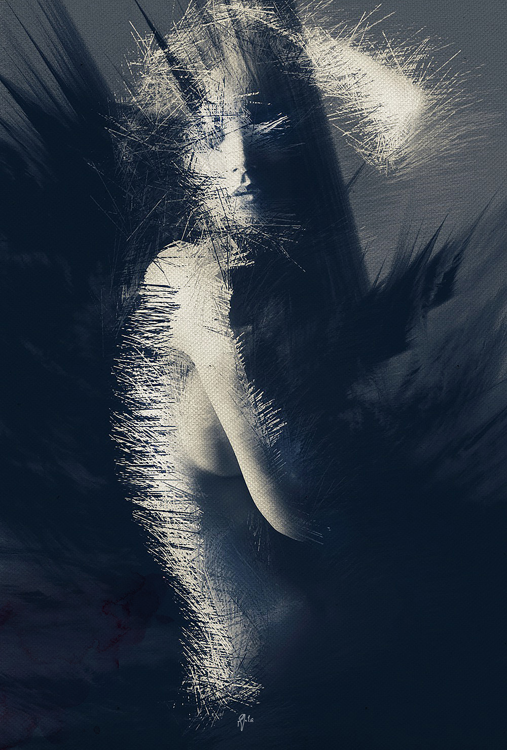 - Emptiness Discovered Descripción:dedicada al descubrimiento de nuestro vacío, a la búsqueda de lo que nos falta dentro, romper la fachada que no nos permite conocer lo que hay detrás y sostener la piel ardiente entre las manos. Pintura Digital realizada en Photoshop Resolución: 6201 x 8681Es un intento de