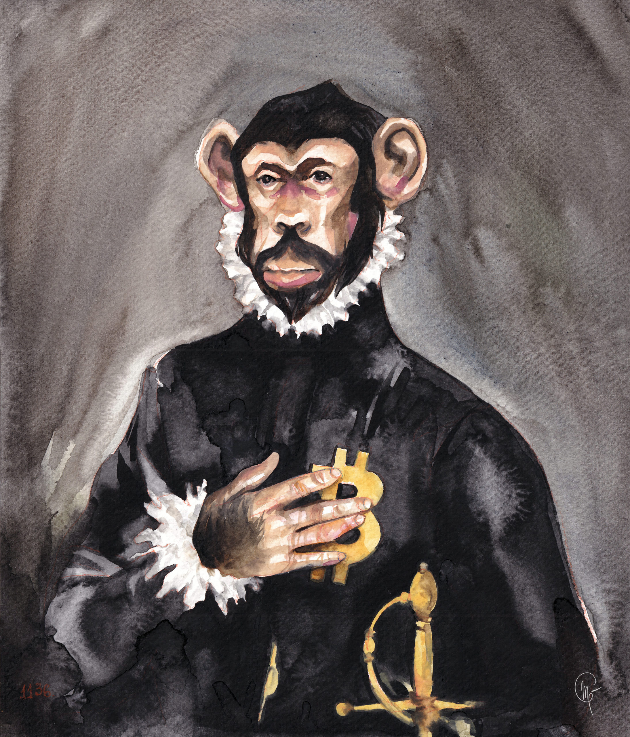 Es una acuarela basada en la pintura de Greco, fusionada con un Bored Ape. Buscaba una fusión de arte tradicional con arte digital, de pintores clásicos como el Greco y artistas de NFT, dando valor a la actualidad del arte sin olvidar lo que nos ha impulsado a crear a lo largo de la historia.