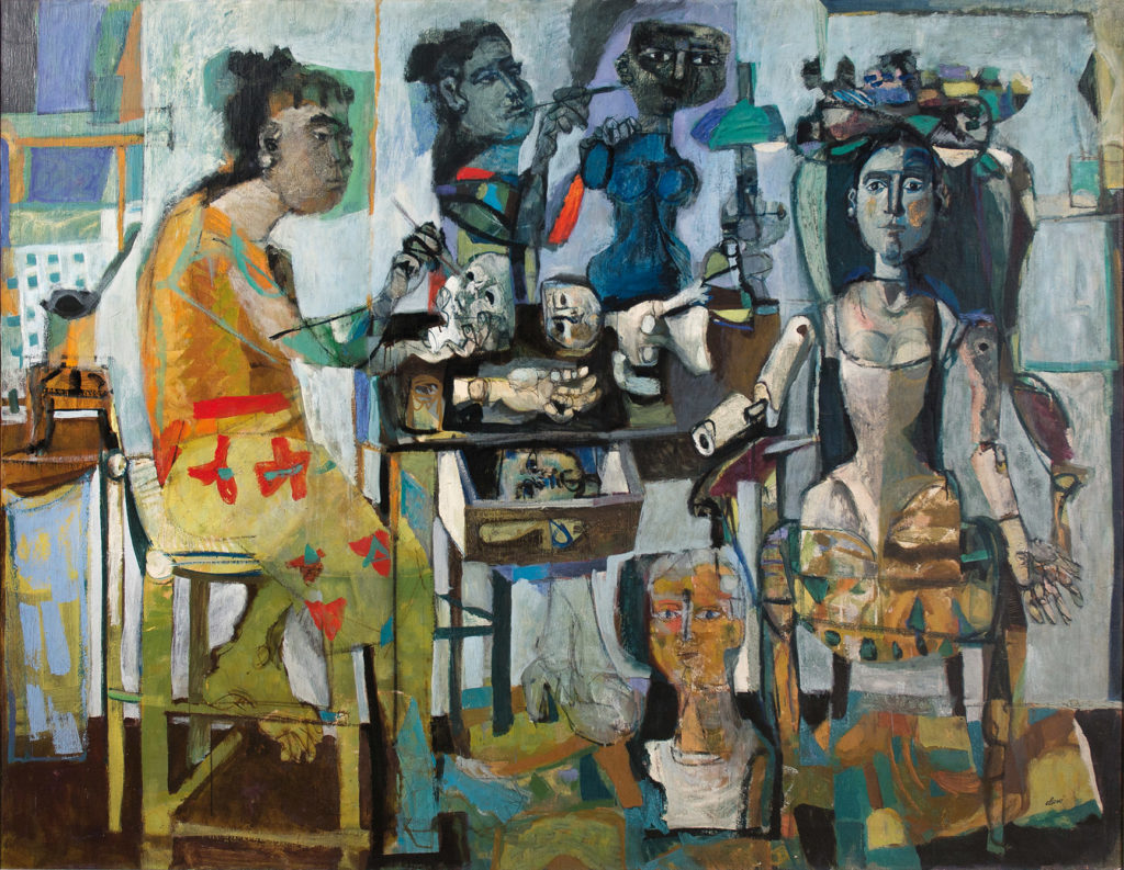 - 1.4.11 Puesto de Honor: Mannequins, de Antoni Clavé; Before the cockfight, de Affandi; Sin título, de Juan Muñoz; Invierno en horizontales, de Fernando Zóbel.