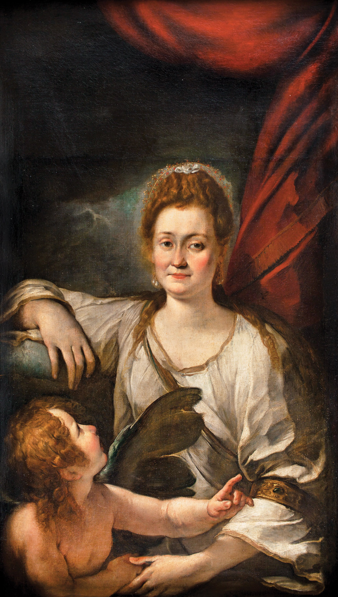 - 1.3.1 1 Retrato de dama de poco más de medio cuerpo con Cupido, del Círculo de Gandolfi o Giulio Cesare Procaccini.