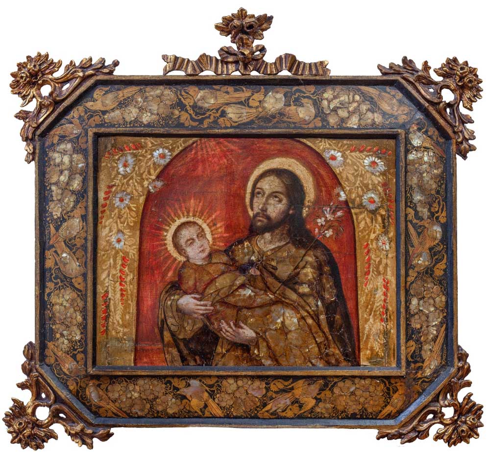 - 1.2.7 7 Enconchado de San José con el Niño Virreinato de Nueva España, fines siglo XVII-principios XVIII