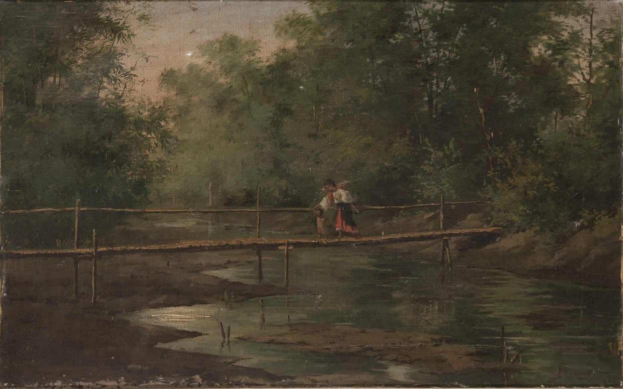 - ¿ESPÍNOLA?, Mujer e hija cruzando el puente. 41 x 67 cm. Auction price: 48.000€ (Segre, July 4)