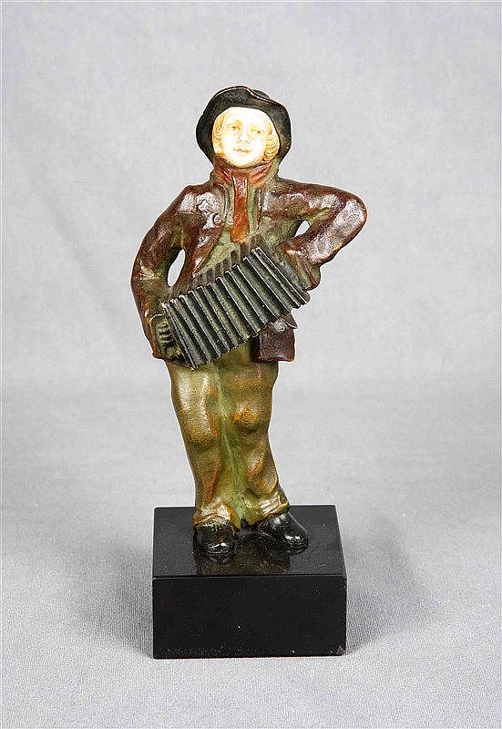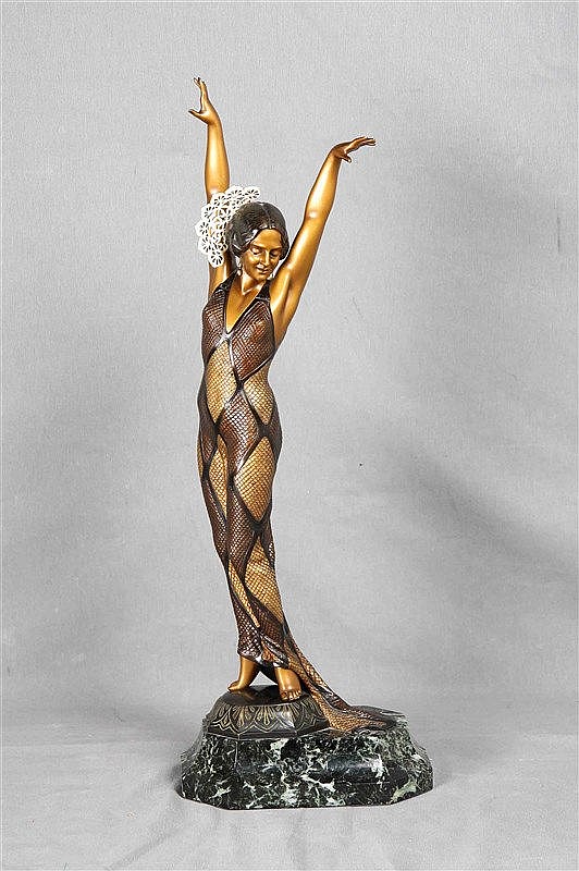 Subastas Galileo presenta una licitación el día 19 de octubre, a las siete y media de la tarde, en la cual encontraremos un catálogo interesante a nivel de escultura, pintura y joyería. Analicemos por partes: en cuanto a la escultura, tenemos dos piezas sobresalientes. Una de ellas es, sin duda, de lo mejor que ofrece Galileo este mes: una escultura de Herman Hugo Otto Poertzel (Scheibe 1876 – Coburg 1963), titulada Bailaora. Es una figura Art Decó en bronce, de en torno a 1920, sobre peana de mármol. 59 cm de altura. La obra es genuina y está firmada en la peana. Representa una bailaora de flamenco, caracterizada al detalle en gesto, mirada, expresión y postura. Muestra la técnica del artista, que es claramente difícil de superar, en su pericia con el bronce. En la cabeza muestra una peineta de marfil calado, y la peana, como ya comentábamos es de mármol verde veteado. Saldrá a subasta por 8.000€ (ver). También en escultura, pero en una calidad algo inferior y aún así muy destacable, encontramos Acordeonista de A. Jorel (1920), una figura crisoelefantina sobre peana de mármol. Se adjunta certificado de la escultura, de 20,5 cm de altura. Saldrá a subasta por 900€ (ver).