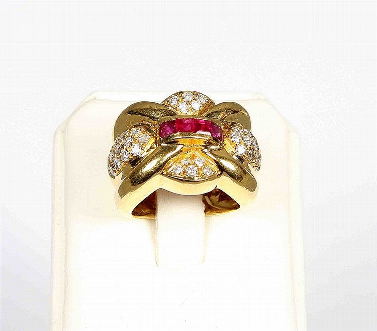 Y por último, en joyería, vemos dos anillos interesante, el primero es una sortija con cuatro rubíes centrales y brillantes en montura de oro rosa, que saldrá a subasta por 1.400€ (ver); y el segundo una sortija rígida de eslabones, con brillantes y montura de oro blanco y oro rosa, que saldrá por 1.400€ también (ver).