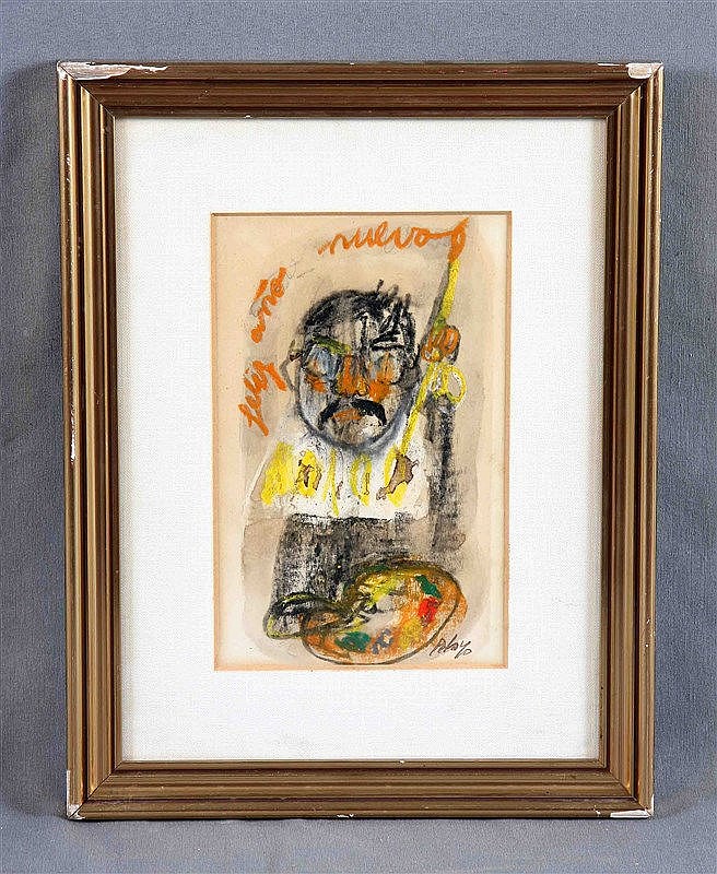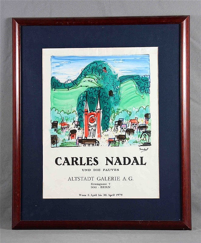 Siguiendo con este campo, vemos obras como Bodegón de panes y peces (35 x 50 cm) de Joaquín Vaquero Palacios (1900 – 1998), un óleo sobre lienzo firmado, que saldrá a subasta por 950€ (ver). También es interesante el Autorretrato de Orlando Pelayo (1920 – 1990), una técnica mixta sobre papel que también aparece firmada y que saldrá a subasta por 450€ (ver). Y, como lote curioso, este cartel litográfico retocado sobre papel, firmado por Carles Nadal (1917 – 1998), Exposición en Berna, Abril 1979 (53 x 41 cm).