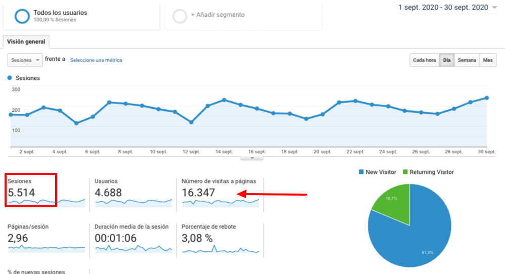 En septiembre de 2020, recibimos más de 5.500 visitas, con un aumento espectacular de páginas vistas (16.347) respecto al mismo periodo en 2019