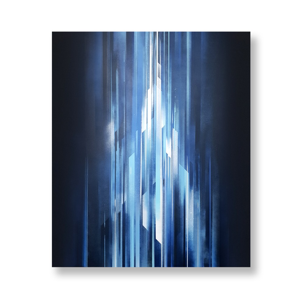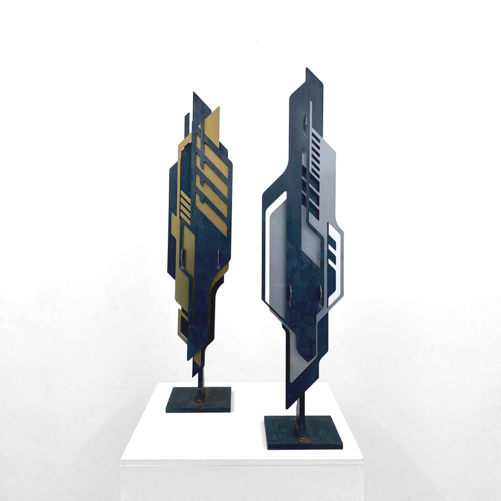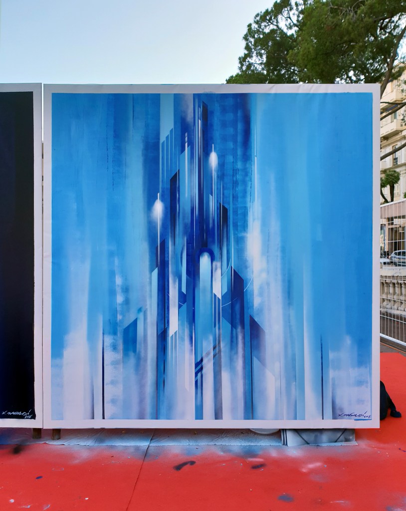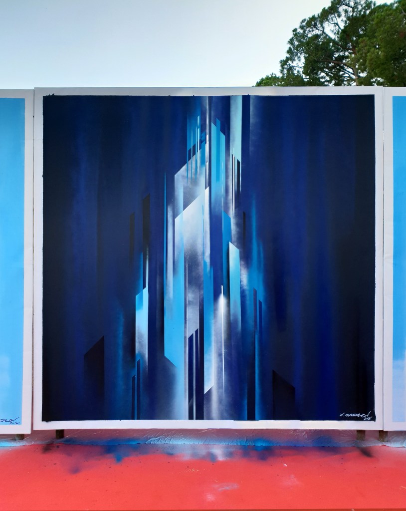 “The work of Xavier Magaldi reflects the artist’s apparent fascination with futuristic forms and mechanical movements. The precise geometrical shapes, reduced palette, and the intense compositional relations reveal the concept reminiscent of avant-garde sensibility and profound interest in concepts of velocity and transformation. ” Widewalls Magazine