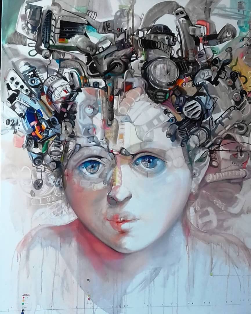 En el proceso de inspiración intervienen muchos elementos, y en lo que se refiere a mi última etapa de trabajo puedo decir que soy un artista muy aprehensivo con todo lo que me rodea, desde elementos cotidianos, objetos de maquinarias, elementos tecnológicos, vivencias personales o sucesos aislados. También la lectura de un libro, la naturaleza abstracta de un paisaje, una ciudad y su movimiento, y como no, mi estado de ánimo, que es mi principal motor. Todos, mezclados, son eventos que me inspiran en mi proceso de creación.