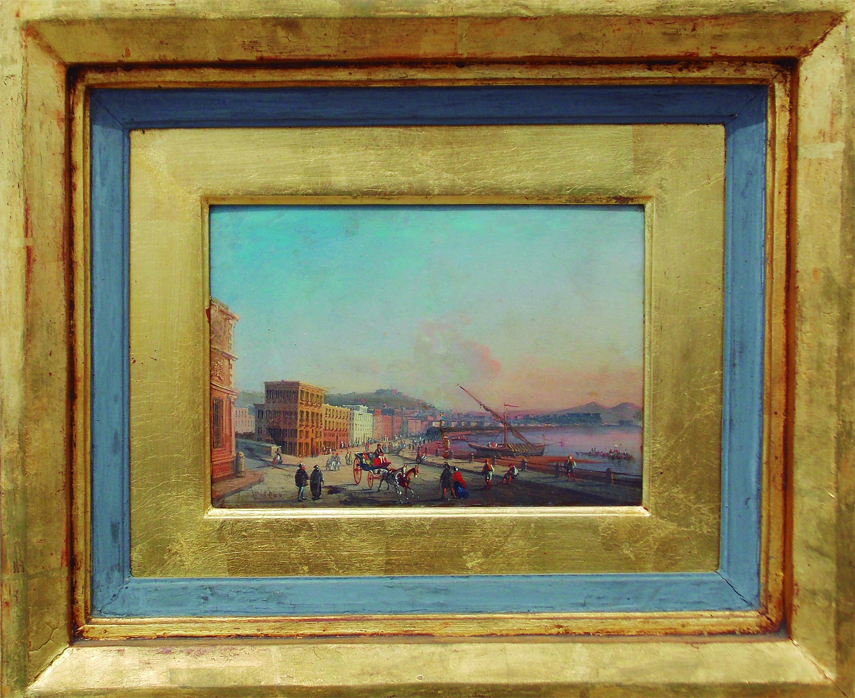 Serán ofrecidas además dos obras del pintor Consalvo Carelli (1818-1885, escuela italiana). Una se titula “Nápoles con pescadores”, un óleo sobre tela firmado y situado en Nápoles abajo a la derecha. -medidas: 39 x 64 cm.-, y la otra se denomina “Pozzuoli”, otro óleo sobre tela firmado y situado en Nápoles abajo a la derecha, y mide 39 x 64 cm. En la misma línea se destaca “Bahía de Nápoles”, de Anton Sminck van Pitloo (1791-1837, escuela holandesa). Se trata de un óleo sobre cartón firmado abajo a la izquierda. Al dorso tiene una etiqueta de Christie’s con código de entrada “Nº 765763” -medidas: 15 x 21.5 cm.-. Las tres obras tienen una base de US$ 2.000.