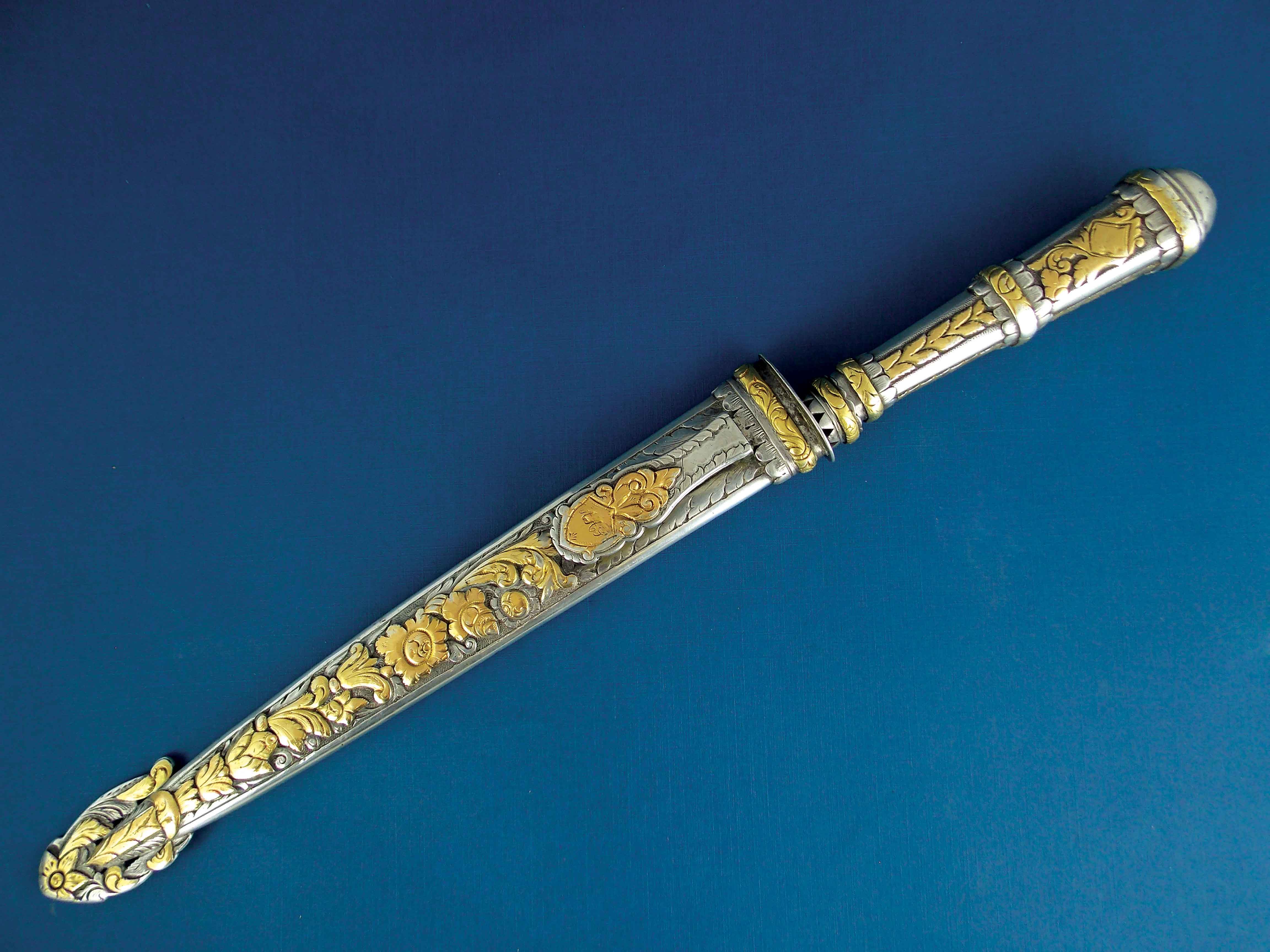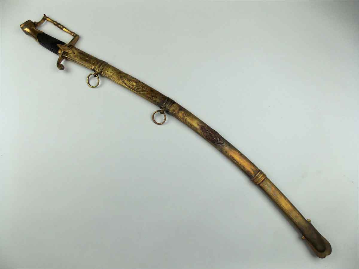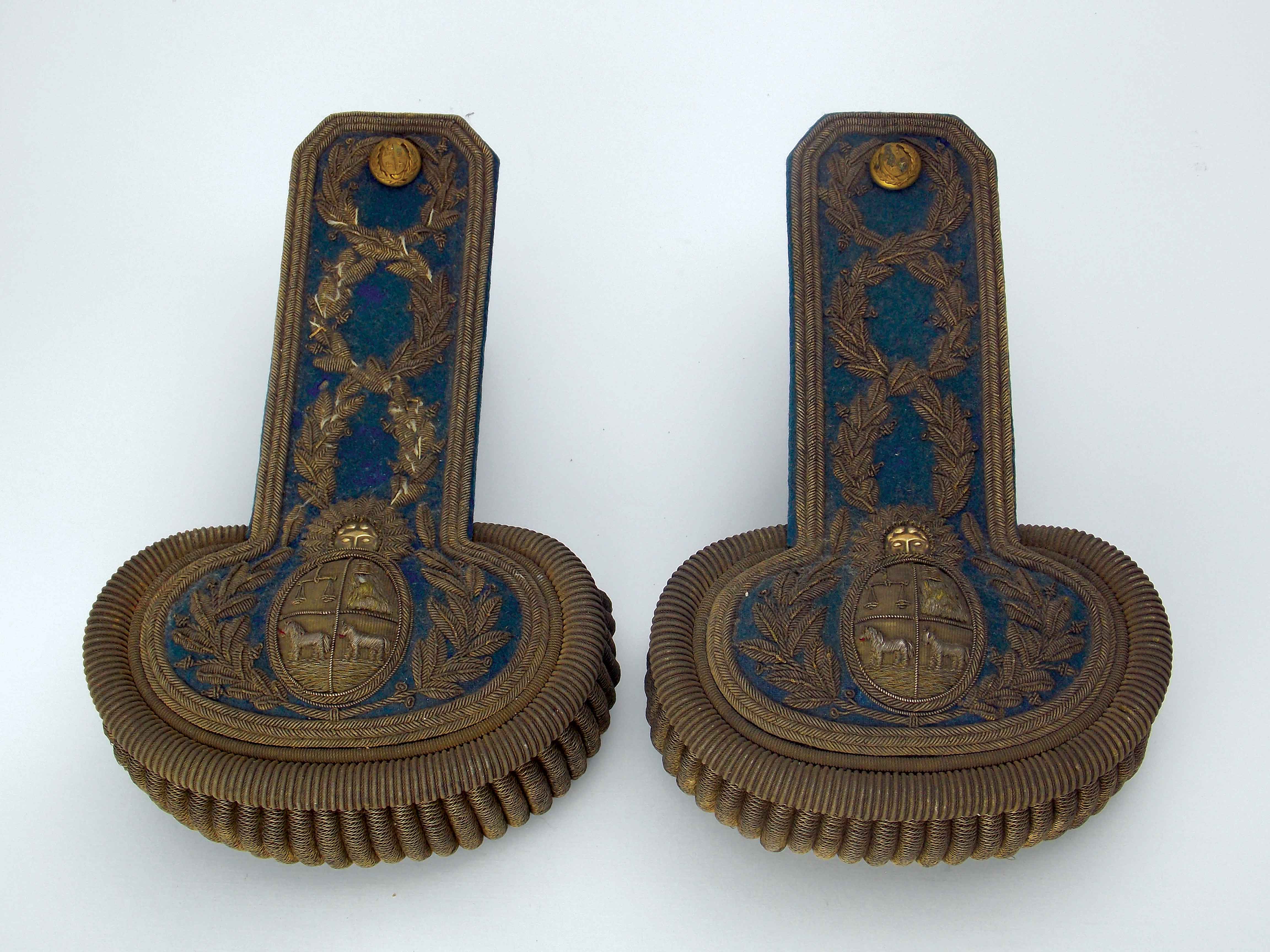 El lote 89 es un par de charreteras del General Máximo Santos de Teniente General, una jerarquía promulgada en su gobierno tras la promulgación del Código Militar en Uruguay, que tuvo validez entre 1884 y 1885. Máximo Santos tuvo siempre la jerarquía de Capitán General, un grado único que crearon las Cámaras durante su presidencia, entre 1882 y 1886. Estas charreteras están forradas en paño azul celeste, bordado con filigrana dorada, el escudo nacional y hojas de laurel. Continuando con militaria, encontramos un sable napoleónico de la época del Primer Imperio, con la hoja curva tallada al ácido con flores y motivos militares. El guardamano está realizado en bronce cincelado y dorado al mercurio, con madera de ébano segrinada y la vaina en bronce dorado al mercurdio con dos medallones que muestran un motivo marino y otro de libertad.