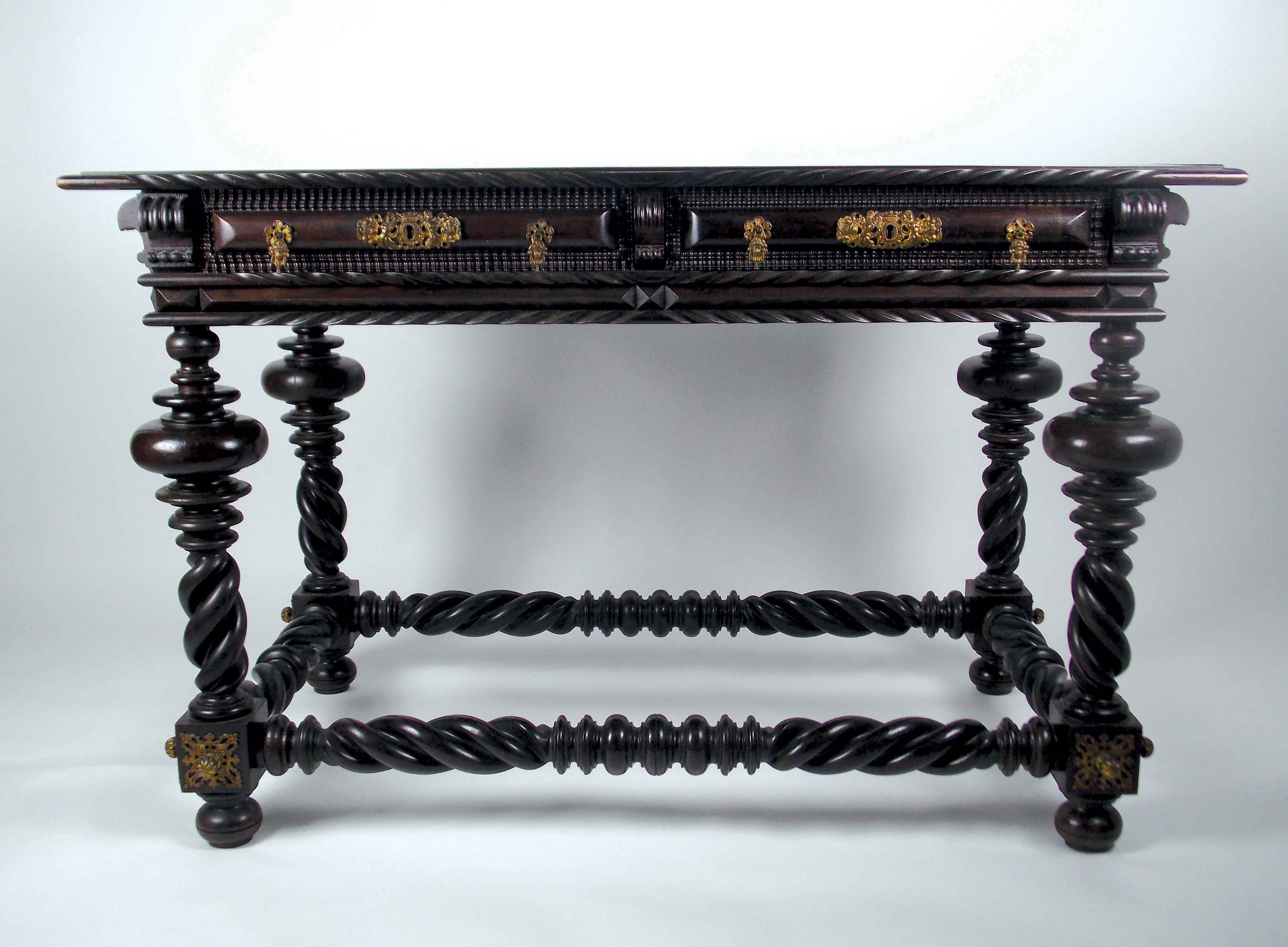 Pasando al ámbito del mobiliario, destaca un escritorio portugués en jacarandá y nogal con dos cajones con bocallaves y tiradores en bronce dorado cincelado con formas de ángeles y medusas (80 x 126 x 66 cm). Perteneció al ex presidente argentino Marcelo Torcuato de Alvear, y a su mujer, Regina Pacini de Alvear. Se vendió en 1966 en una subasta del Hotel de Ventas Charcas, como lote 93 de la misma. También sale a subasta una mesa de arrimo portuguesa, de la época Don José, en jacarandá tarugado, con dos cajones (81 x 123 x 69 cm).