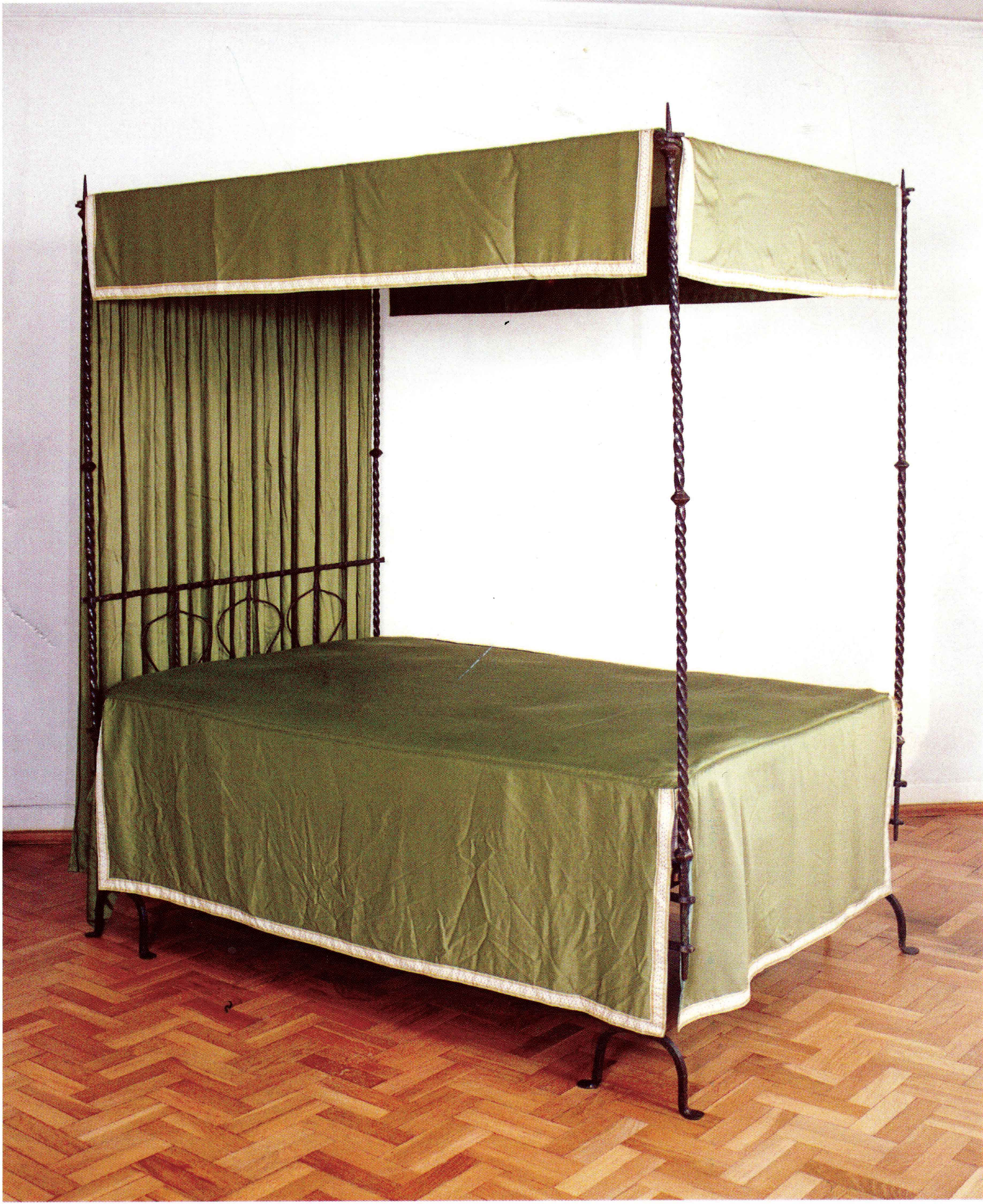 La gran mesa luso-brasileña que conforma el lote 351 data del siglo XVIII, también en jacarandá tarugado, con cuatro patas torneadas y seis cajones con bocallaves (82 x 140 x 90 cm). También, en el lote 352, vemos una fabulosa cama de viaje doble portuguesa con dosel (217 x 195 x 132 cm), del siglo XVII, en hierro forjado con columnas y respaldo torneado. El último lote destacado de mobiliario corresponde a un antiguo secretaire de viaje del Alto Perú realizado en madera y forrado en su totalidad en placas de plata repujada y cincelada con aves, damas con trompeta, uvas y flores. Posee tres cajones, una tabla deslizante tipo escribanía y una tapa volcable (29 x 55 x 33 cm).